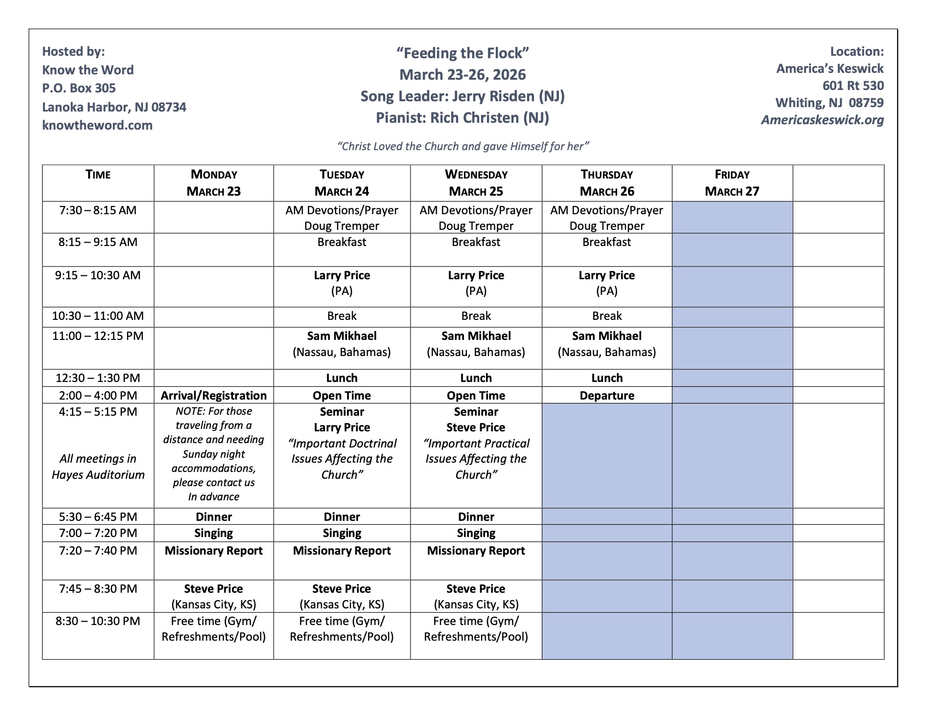 Theme: Christ also loved the Church and gave Himself for her, Eph 5:25
